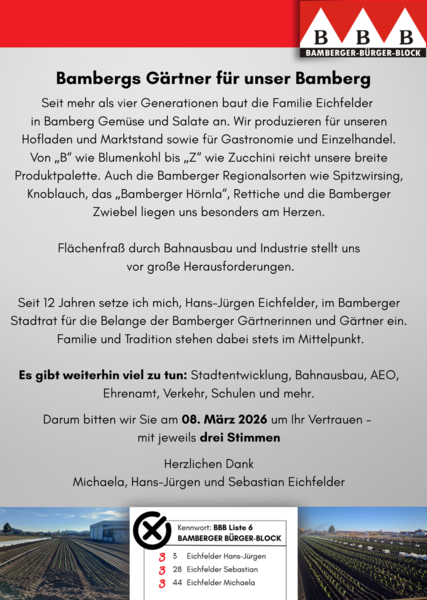 Unser Familienbetrieb besteht bereits in vierter Generation und betreibt Gemüse- und Salatanbau auf eigenen Felder in und um Bamberg.